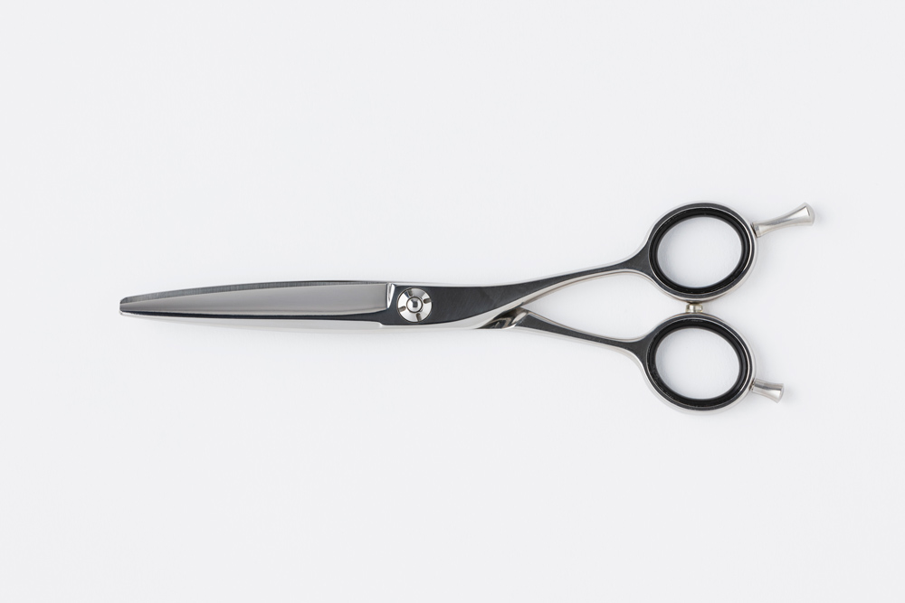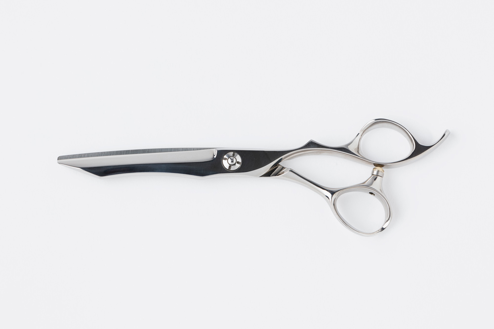 蛤刃で刃付けを行い柔らかい切れ味でカットすることができ、 材質にはコバルトスペシャルを使用しているので永切れするシザーです。