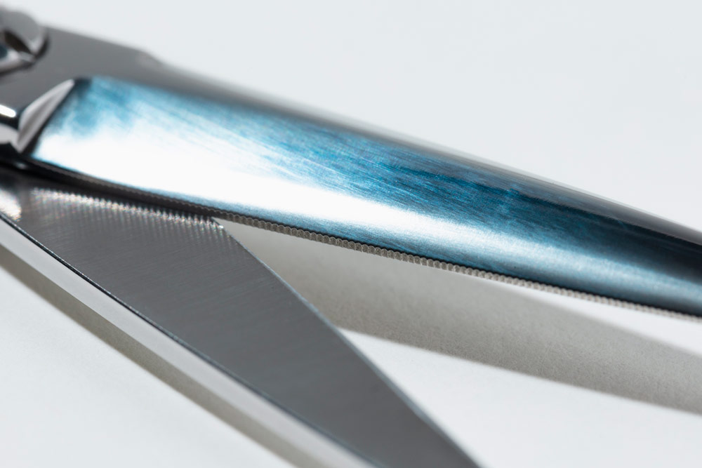 剣刃で刃付けを行い、硬毛にも負けないカットをすることができ、材質には最高級鋼材のコバルトスペシャルを使用しているので、永切れはもちろん、先端まで髪の毛を逃がさずに切れます。